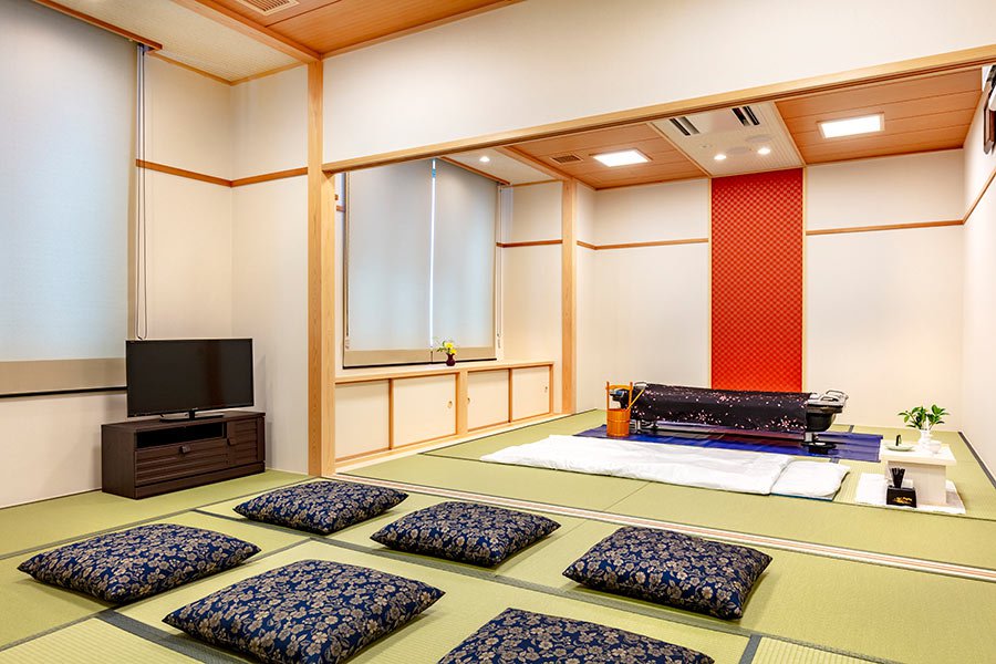 ご自宅のような雰囲気でゆっくりとお別れがしたいとお考えの方には、親族室でご葬儀を執り行うこともできます。各親族室には和室、食事室、ご遺族仮眠室やバスルーム、トイレも備えてあり、ゆったりとお過ごしいただけます。ご遺族の皆様の大切な想いを取り入れた、さまざまなご葬儀を真ごころを込めてお手伝いさせていただきます。