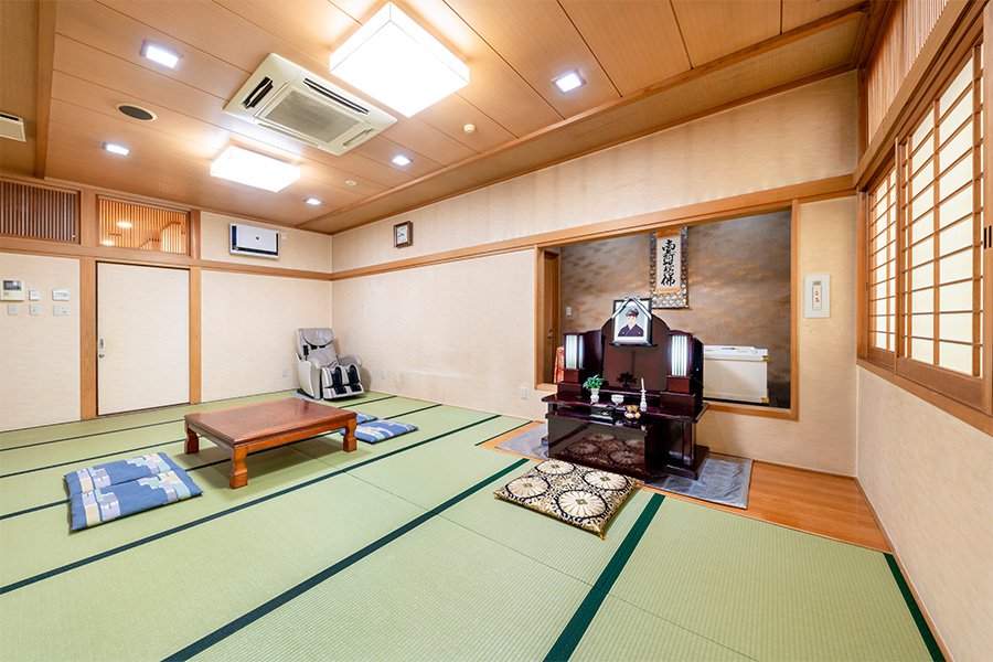 ご自宅のような雰囲気でゆっくりとお別れがしたいとお考えの方には、親族室でご葬儀を執り行うこともできます。各親族室には和室、食事室、ご遺族仮眠室やバスルーム、トイレも備えてあり、ゆったりとお過ごしいただけます。ご遺族の皆様の大切な想いを取り入れた、さまざまなご葬儀を真ごころを込めてお手伝いさせていただきます。