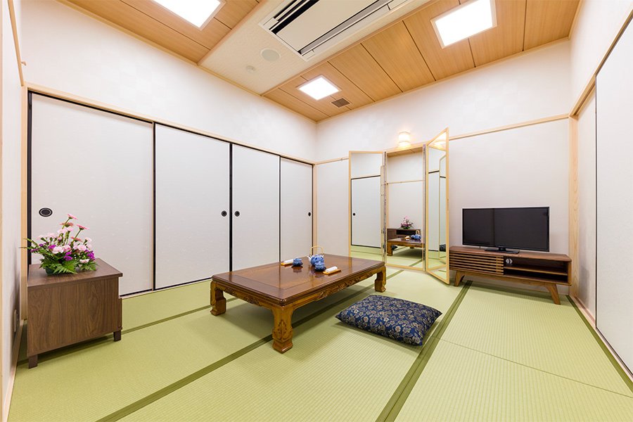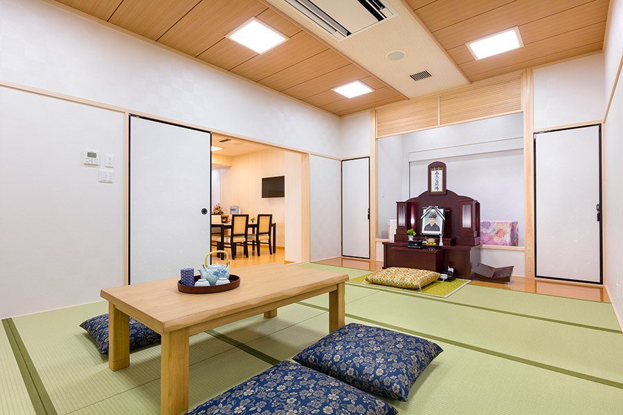 ご自宅のような雰囲気でゆっくりとお別れがしたいとお考えの方には、親族室でご葬儀を執り行うこともできます。各親族室には和室、食事室、ご遺族仮眠室やバスルーム、トイレも備えてあり、ゆったりとお過ごしいただけます。ご遺族の皆様の大切な想いを取り入れた、さまざまなご葬儀を真ごころを込めてお手伝いさせていただきます。