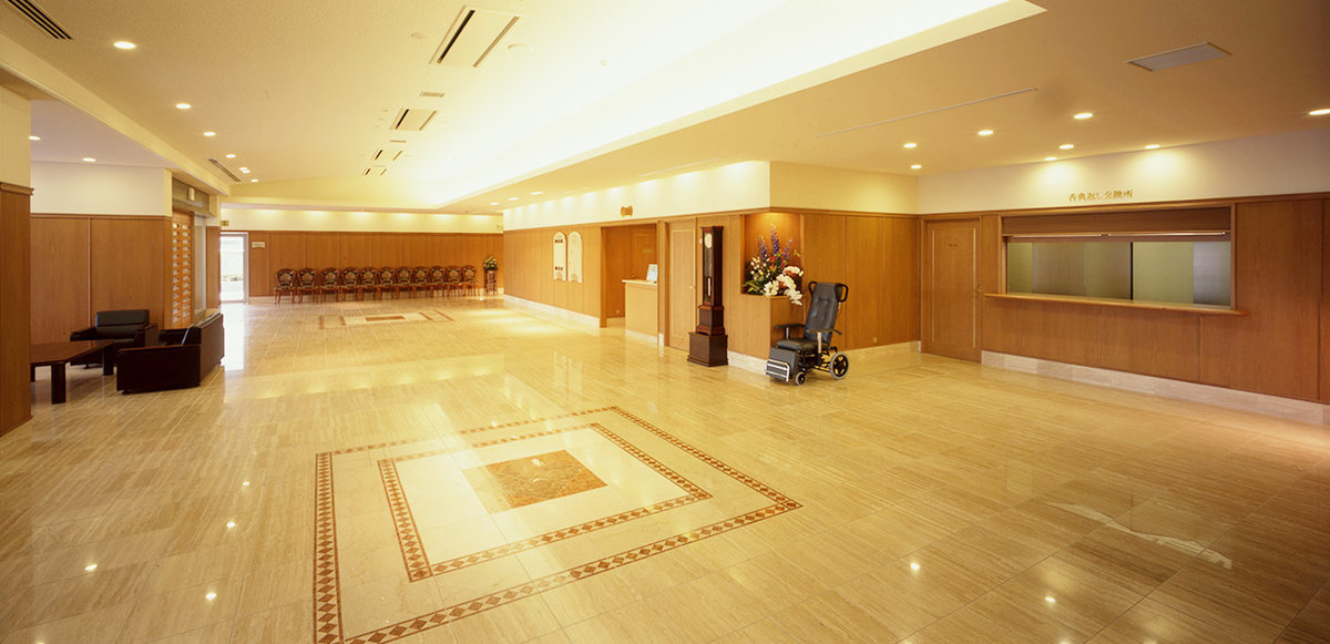 天井が高く明るく開放的なホール。 ゆったりとお過ごしいただける親族室。