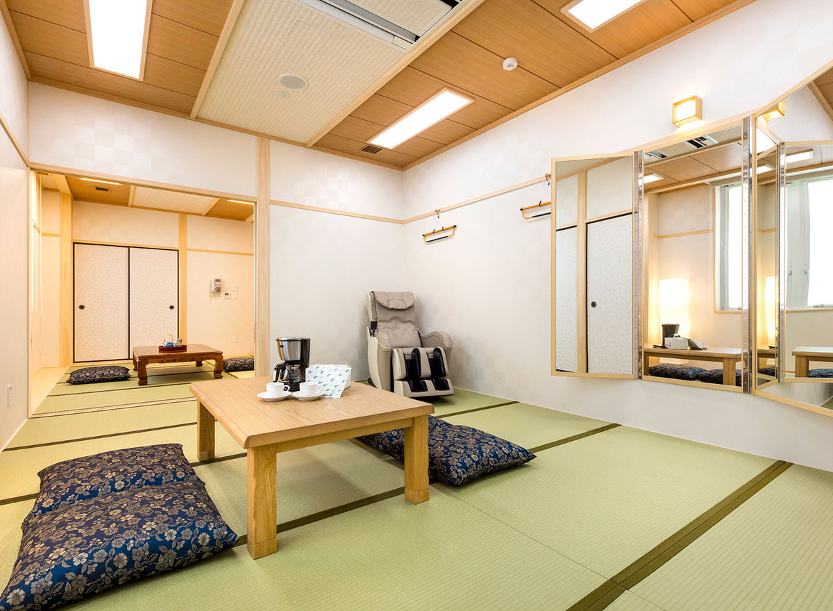 ご自宅のような雰囲気でゆっくりとお別れがしたいとお考えの方には、親族室でご葬儀を執り行うこともできます。各親族室には和室、食事室、ご遺族仮眠室やバスルーム、トイレも備えてあり、ゆったりとお過ごしいただけます。ご遺族の皆様の大切な想いを取り入れた、さまざまなご葬儀を真ごころを込めてお手伝いさせていただきます。
