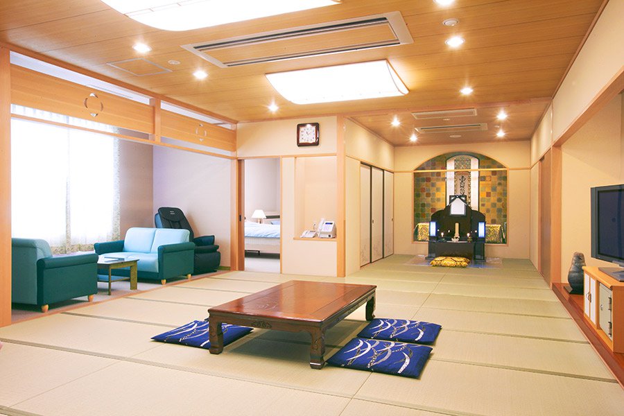 ご自宅のような雰囲気でゆっくりとお別れがしたいとお考えの方には、親族室でご葬儀を執り行うこともできます。各親族室には和室、食事室、ご遺族仮眠室やバスルーム、トイレも備えてあり、ゆったりとお過ごしいただけます。ご遺族の皆様の大切な想いを取り入れた、さまざまなご葬儀を真ごころを込めてお手伝いさせていただきます。