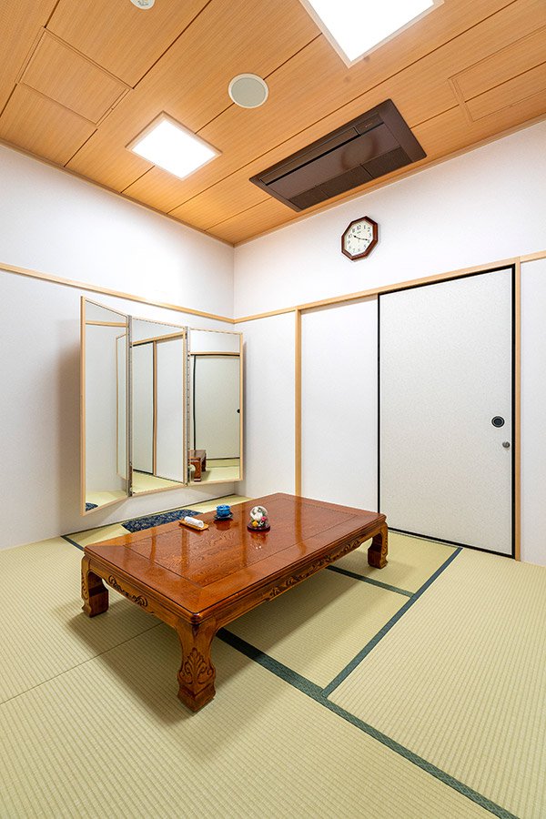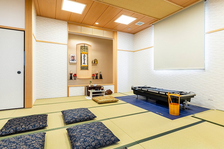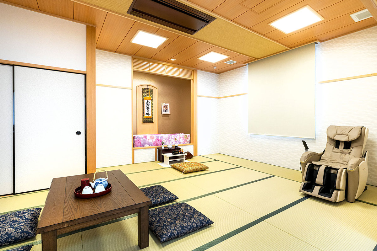 ご自宅のような雰囲気でゆっくりとお別れがしたいとお考えの方には、親族室でご葬儀を執り行うこともできます。各親族室には和室、食事室、ご遺族仮眠室やバスルーム、トイレも備えてあり、ゆったりとお過ごしいただけます。ご遺族の皆様の大切な想いを取り入れた、さまざまなご葬儀を真ごころを込めてお手伝いさせていただきます。