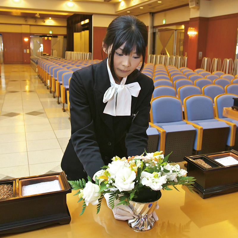 「ご家族の方がどんなお式を望んでいらっしゃるのかをお聞きし、故人のお好きだったことなども伺います。直接故人をご存知ない方も参列されていますから、生前どんな方だったか、お人柄をお伝えして、少しでも故人を知っていただいて、偲んでいただけるようにと考えています」と藤原さん。