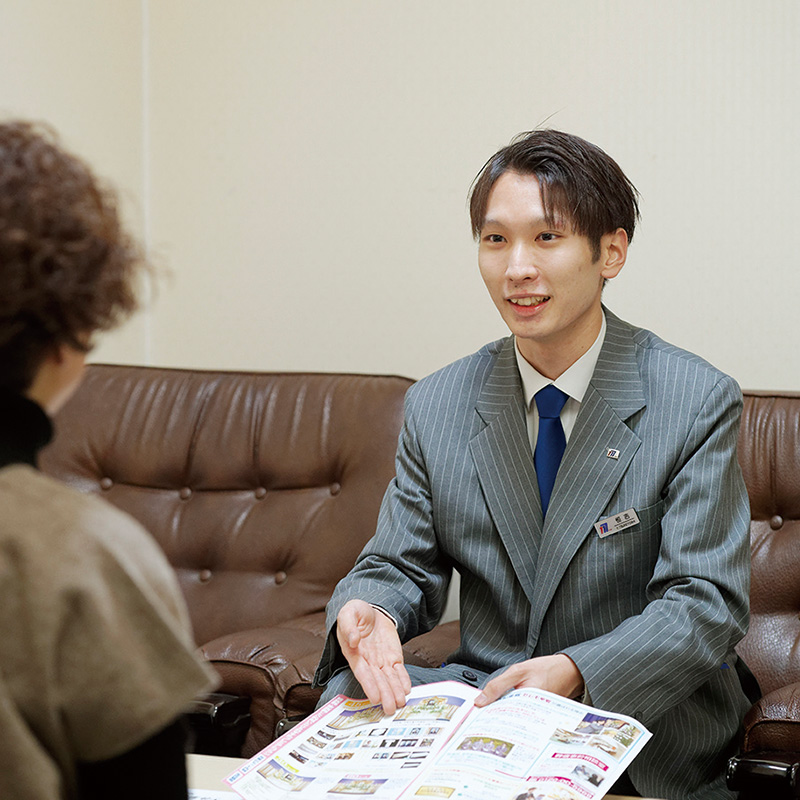 2018年11月入社、飾磨大和会館へ配属後、2020年1月より龍野大和会館に所属する恒吉勇佑さん。現在、葬儀の打ち合わせや当日の式進行などに携わっています。大和会館に就職したのは19歳。