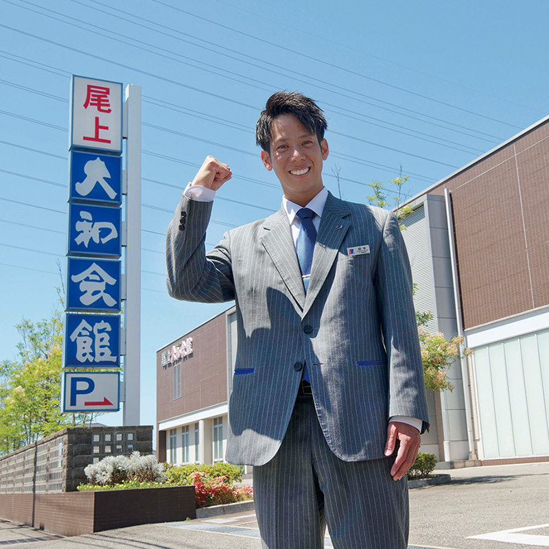 中学生の頃、祖父の葬儀で大和会館を利用したことが、この仕事を意識したきっかけに。「自分の将来のことなど考えていない頃でしたが、スタッフの方のお辞儀の角度や丁寧な言葉遣い、立ち居振る舞いのすべてに驚きました。