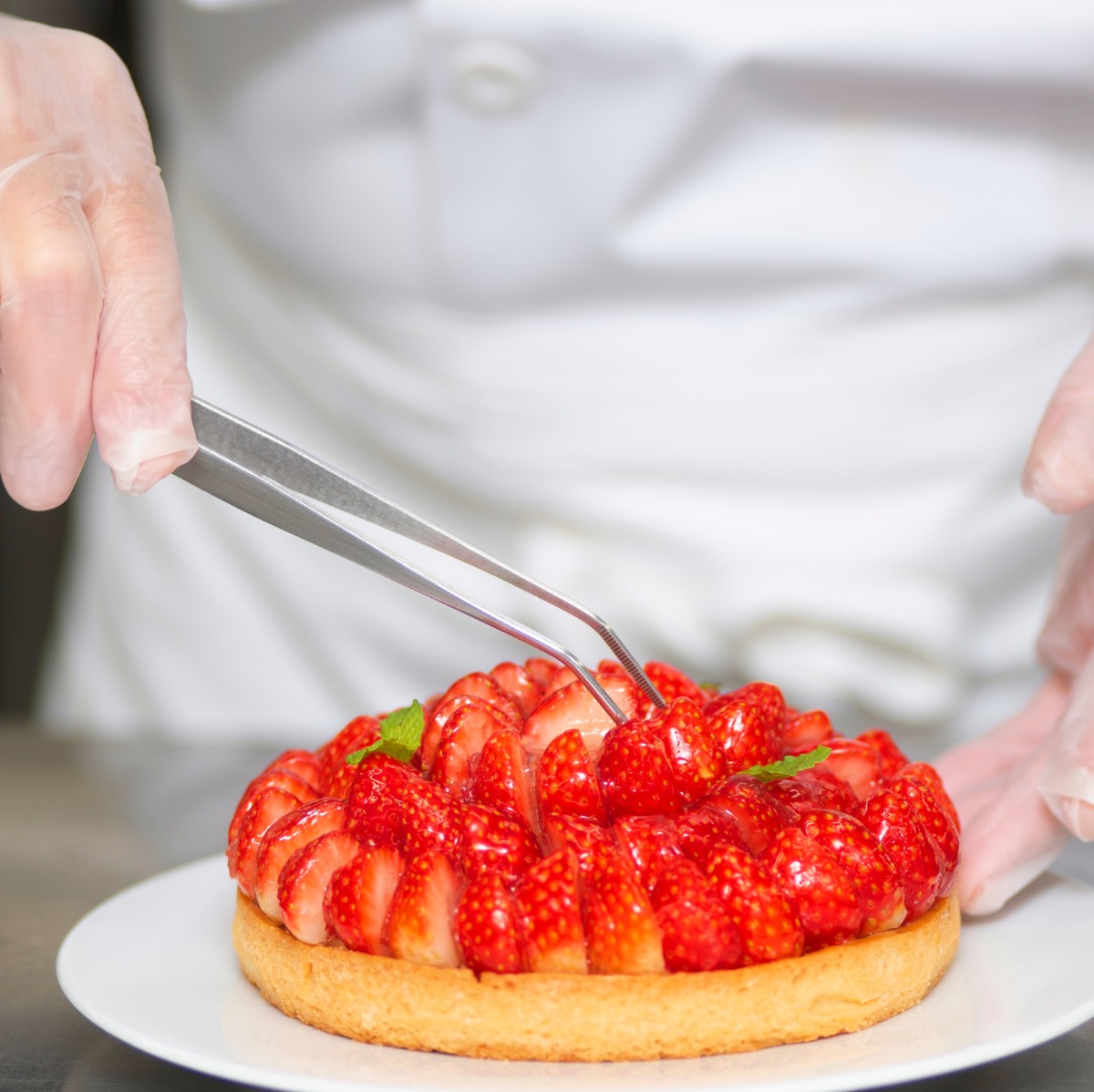 タルトのサクサク感を出すために、小麦粉はたんぱく質の少ないものを選び、グラニュー糖やアーモンドプードルの粒子の大きさにもこだわっています。