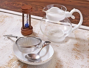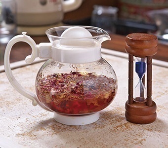 お湯を注いでからハーブを抽出する時間を計ります。ほとんどのハーブがお湯を注いでから3分後ぐらいが丁度いい色・味になるので砂時計の3分計りを用意しておくと便利です。