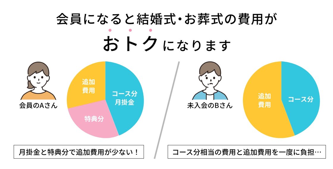 月々わずかな掛金で結婚式やお葬式の準備ができます