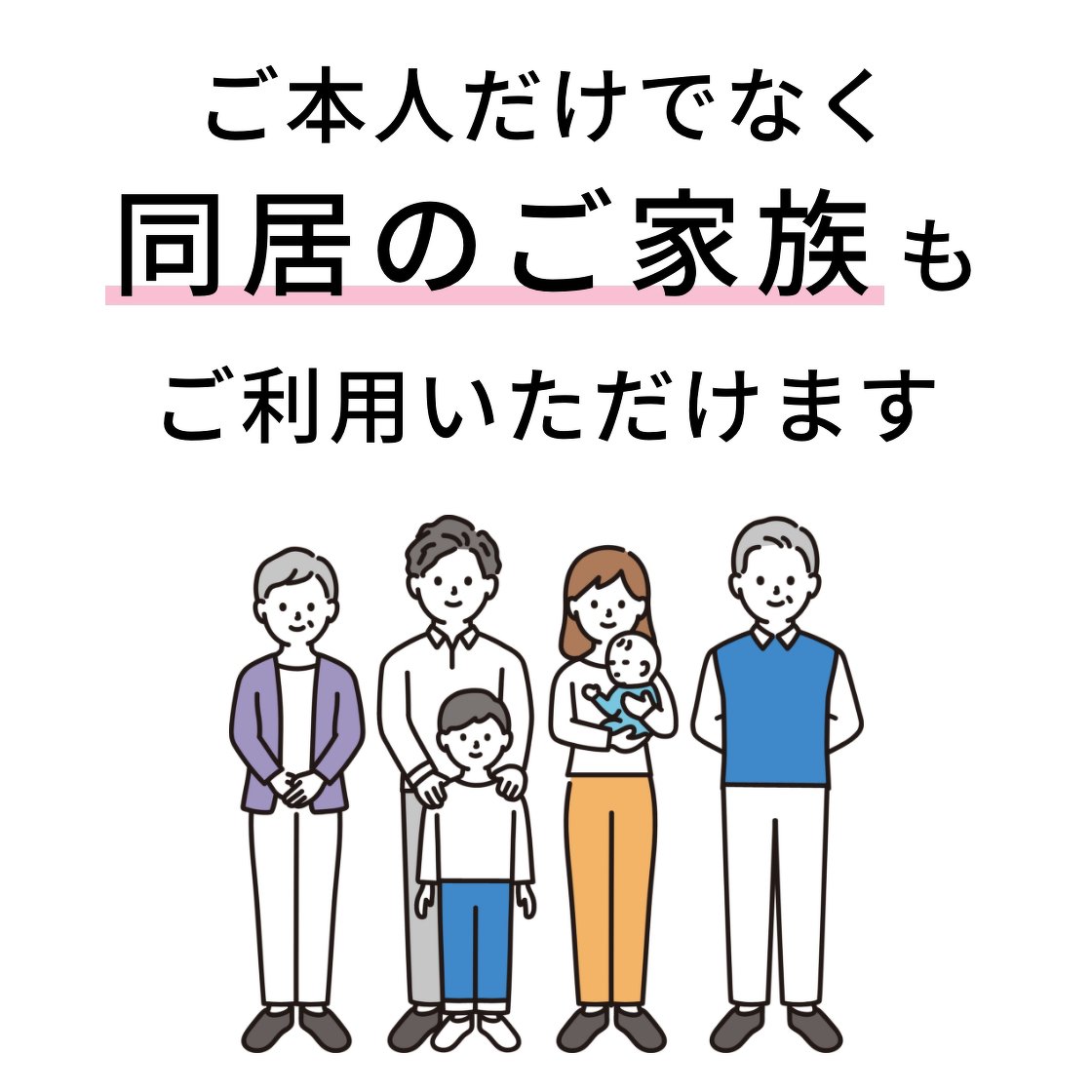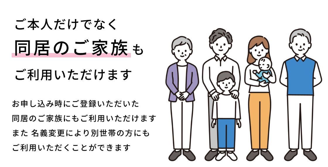 お申し込み時にご登録いただいた同居のご家族にもご利用いただけます