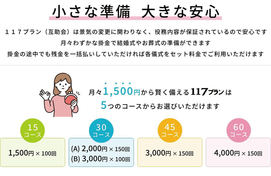 117プラン(互助会)は景気の変更に関わりなく、役務内容が保証されているので安心です