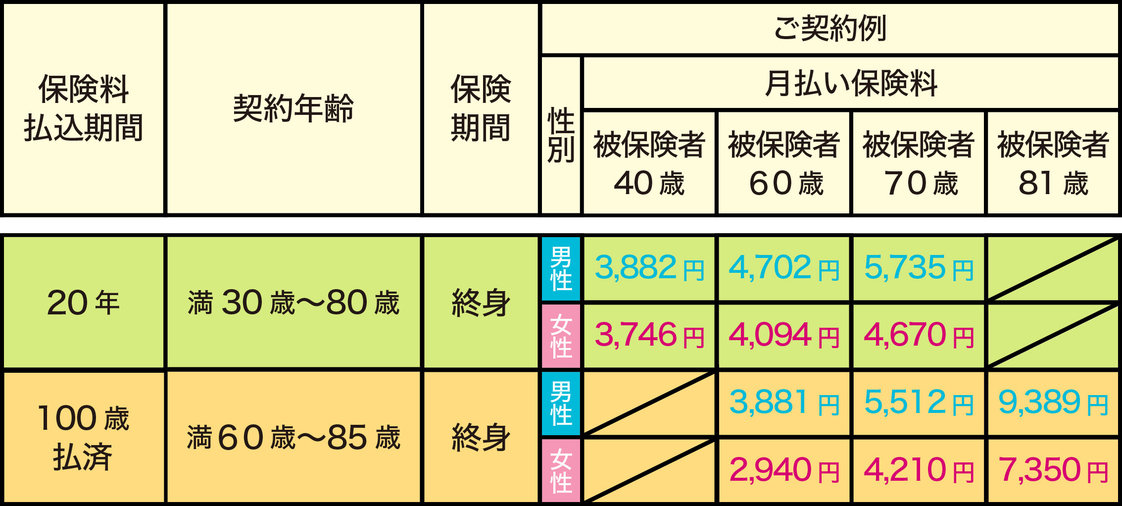 ※満81歳〜満85歳の方は100歳払済のみのお申し込みとなります。