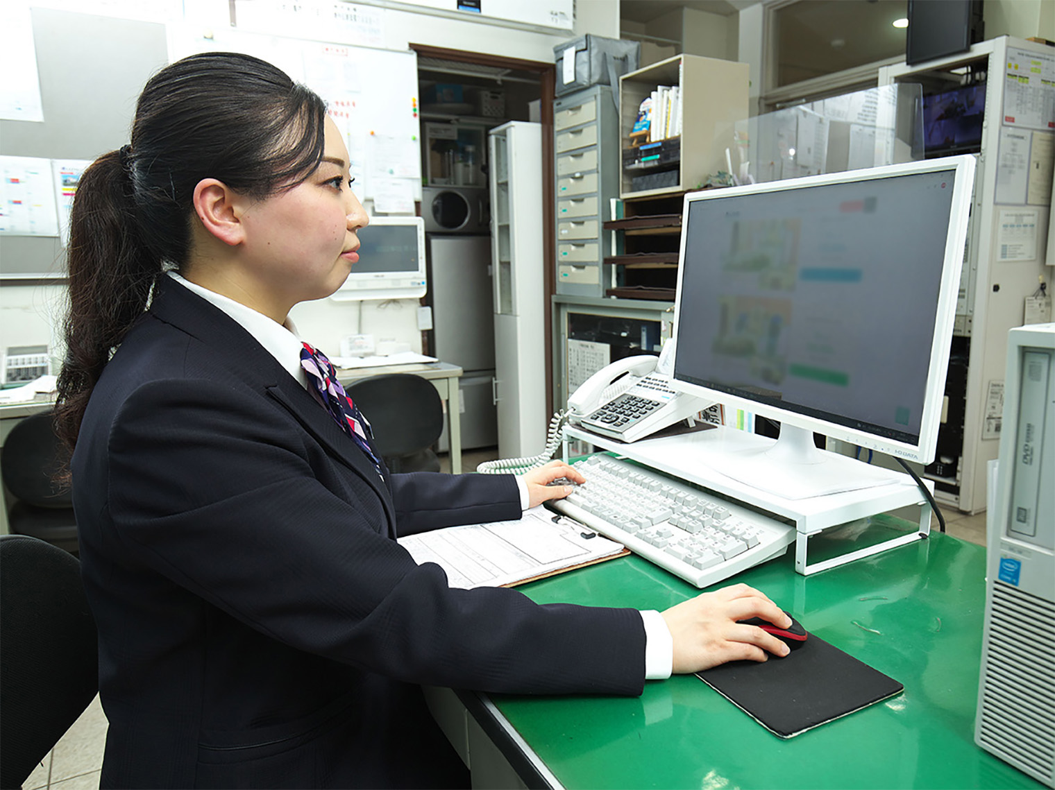 電話応対や伝票作成を行っています。また、来館のお客様応対や事前相談などの問い合わせにも対応しています。主に、事務所内での仕事がメインですが葬儀にかかわるサポート役として1件1件の葬儀を支えています。